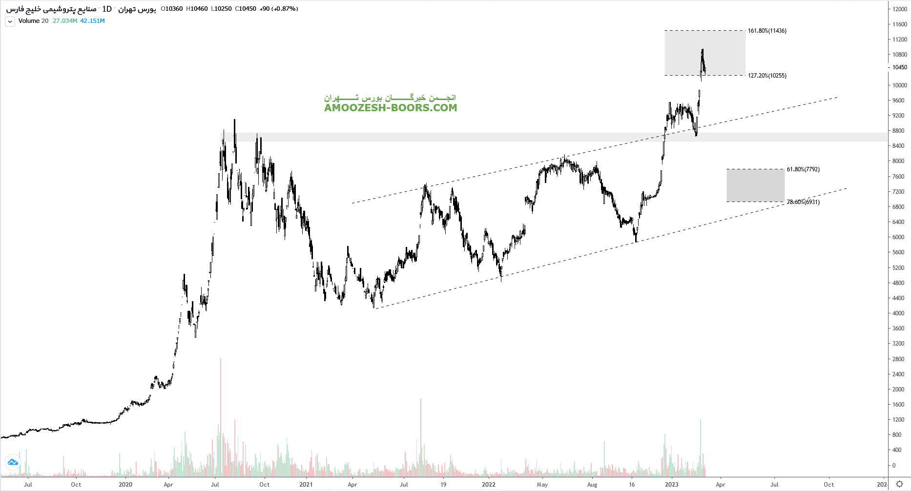 اولین مقاومت سهم فارس ناحیه ۱۱۰۰ تومان تعیین شده است که قیمت می تواند با بروز واکنش منفی نسبت به این ناحیه مقاومتی وارد اصلاح شود. همچنین در صورت اصلاح اولین حمایت سهم فارس ناحیه حمایتی ۸۷۰ تومان در صورت شکست حمایت بعدی سهم فارس ناحیه ۷۸۰ تومان تعیین شده است.