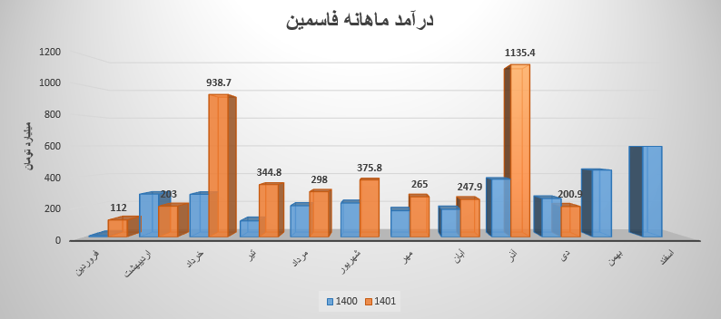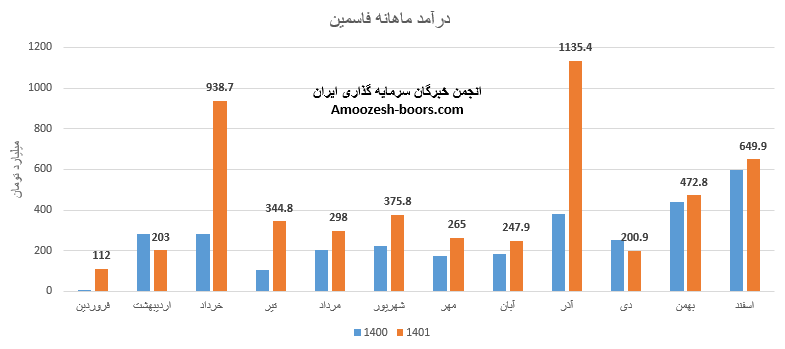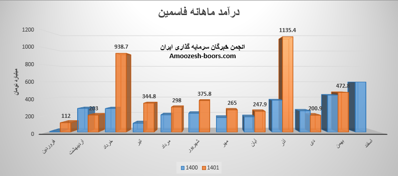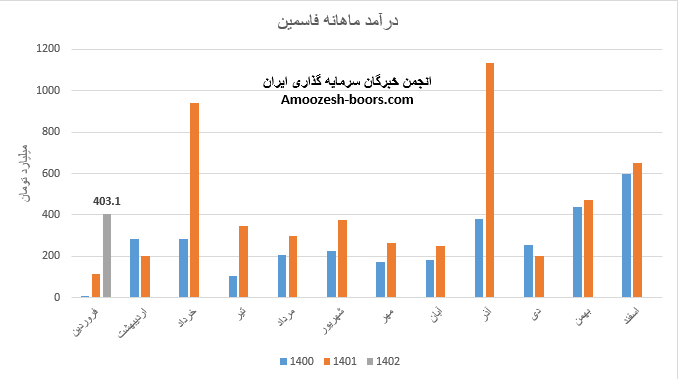 مجموع درآمد نماد فاسمین طی عملکرد 10 ماهه نسبت به مدت مشابه سال قبل 95% رشد داشته و با توجه به موجودی انبار خوب میتواند گزارش سالانه مطلوبی را روانه کدال نماید