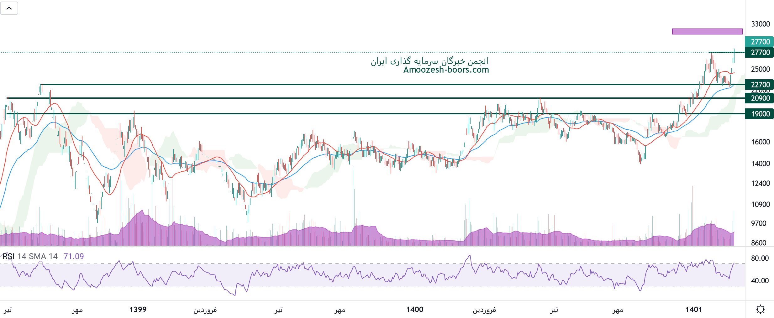 نماد فاسمین در حال حاضر در محدوده پر ریسک مقاومتی 27700 ریال قرار دارد، در صورت حفظ گارد صعودی و ادامه دار شدن فشار تقاضا و عبور از این محدوده مقاومتی، حرکت سهم فاسمین تا محدوده مقاومتی 32000 ریال محتمل میباشد، همچنین در صورت اصلاح، اولین حمایت سهم 22700 ریال ارزیابی میگردد.
