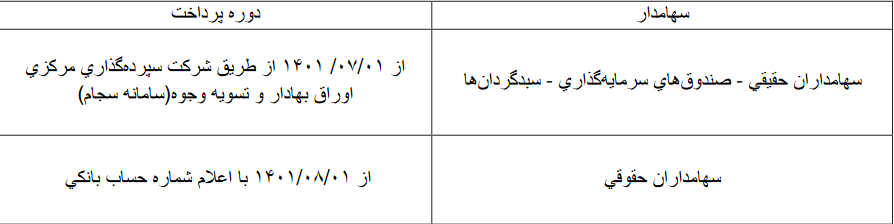 جدول زمانبندی پیشنهاد پرداخت سود سهام نماد فایرا طی عملکرد سال مالی ۱۴۰۰ به شرح ذیل اعلام می گردد: