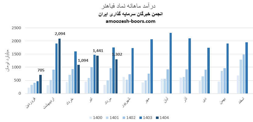 گزارش فعالیت ماهانه نماد فباهنر در اردیبهشت ماه سال 1404 نشان میدهد که این شرکت در این بازه زمانی توانسته است به درآمد 2094.2 میلیارد تومان دست یابد، این رقم نسبت به ماه مشابه سال گذشته 10 درصد افزایش داشته است؛ همچنین در مقایسه با ماه گذشته تغییر 197+ داشته است.