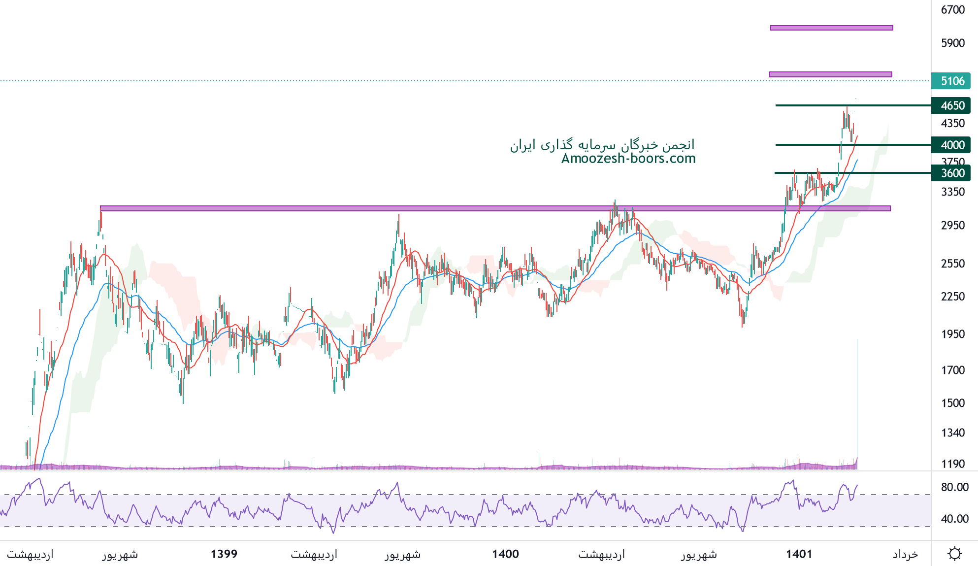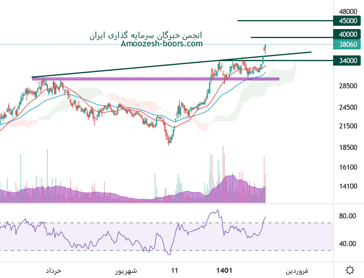 نماد فباهنر مقلومت عدد رند و روانی 40000 ریال را دارا میباشد، در صورت حفظ روند صعودی و ادامه دار شدن فشار تقاضا و عبور از این سطح حمایتی، مقاومت بعدی 45000 ریال ارزیابی خواهد شد، همچنین در صورت ورود سهم فباهنر به فاز اصلاحی، حمایت های سهم 35500 و 34000 ریال در نظر گرفته خواهد شد.