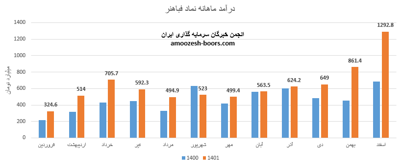 نماد فباهنر با حفظ روند صعودی در درآمد زایی در آخرین ماه از سال مالی نیز موفق به ثبت رکورد جدیدی در گزارشات ماهانه گریده است، درآمد محقق شده سهم فباهنر در اسفند ماه معادل 1292.8 میلیارد تومان گزارش شده که 2% این میزان از طریق صادرات و مابقی از طریق فروش داخلی تامین شده است، در مقایسه درآمد ماهانه شرکت مس شهید باهنر تغییرات زیر را در میابیم: