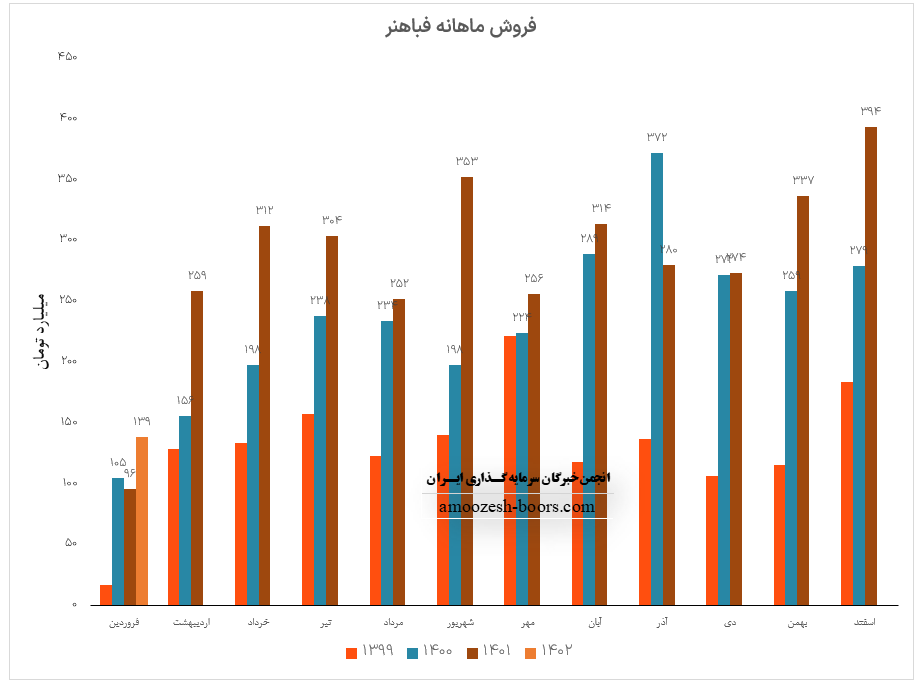 بیشترین میزان فروش نماد فباهنر بر تسمه و ورق مسی استوار بوده است، که نرخ فروش این محصول 8% و مقدار فروش آن 71% رشد را نسبت به ماه قبل تجربه نموده اند، مجموع عملکرد سالانه سهم فباهنر رشد 137 درصدی نسبت به سال گذشته را نشان میدهد.