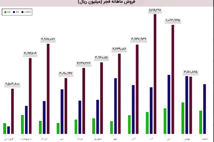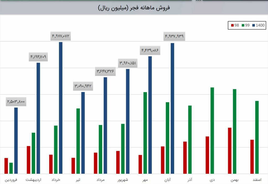 فجر در آذر 1400 مبلغ 662 میلیارد تومان درامد داشته که این میزان نسبت به ماه گذشته 34% و همچنین نسبت به مدت مشابه سال گذشته 157% رشد پیدا کرده است!
