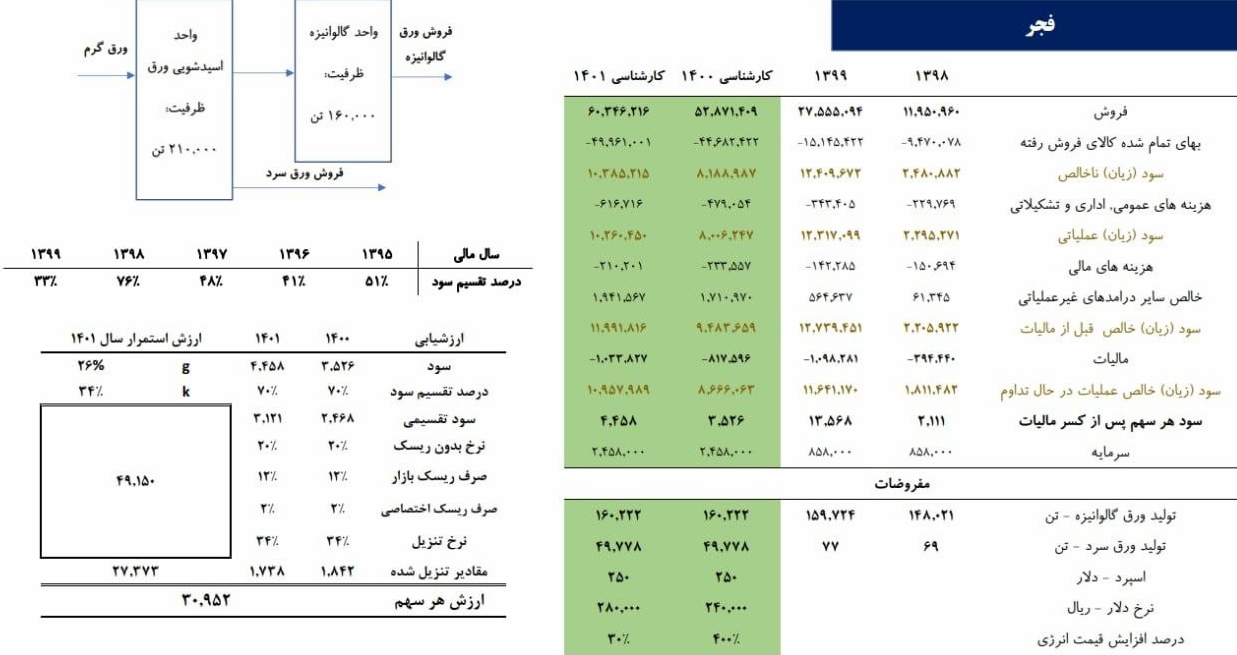 نرخ فروش ورق گالوانیزه شرکت کمی نسبت به آذر افت داشته اما در سطح 28 میلیون تومان به ازای هر تن است.نرخ فروش گالوانیزه هم که بیشترین وزن از سبد فروش شرکت را به خود اختصاص داده در این ماه با تغییر خاصی مواجه نشده است اما در کل روند کاهش نامحسوسی دارد. با توجه به موارد مطروحه و همچنین فروش خوب دی ماه که بیشتر از میانگین درآمد ماههای قبل است، زمستان بدی را برای فجر متصور نیستم اما بهبود سود در کوارتر نهایی مستلزم جهش فروش در 2 ماه باقی مانده است.