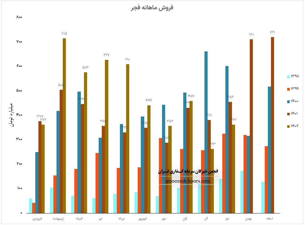 فجر در اسفند ماه از طریق فروش داخلی به فروش 836.9 میلیارد تومانی دست یافت.