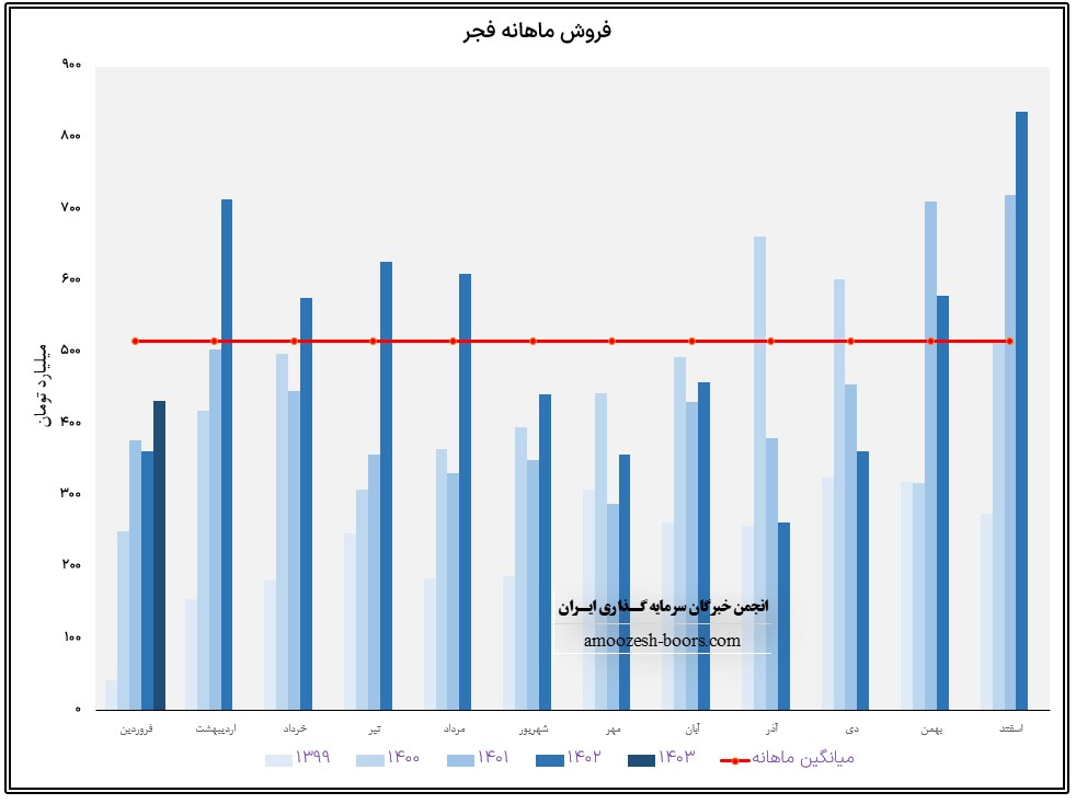 سهم فجر در فروردین ماه حدود بیش از 3700 تن از محصولات خود را به فروش رسانده که این میزان در مقایسه با حجم فروش ماه گذشته خود حدود 78% کاهش پیدا کرده است.