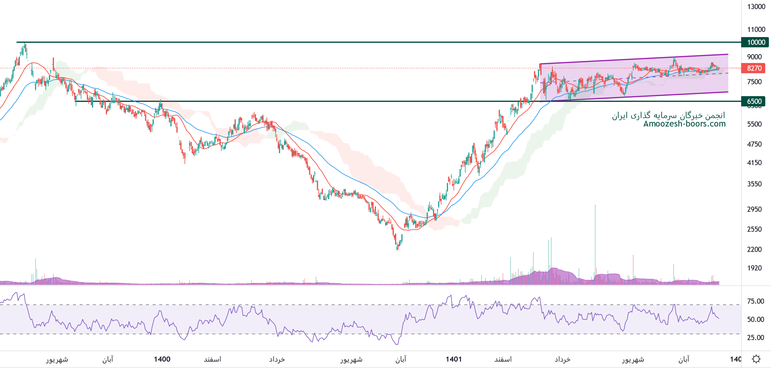 تحلیل تکنیکال سهم فجر نشان میدهد که قیمت در کانال صعودی میباشد، اولین محدوده مقاومت نماد فجر 9000 ریال و مقاومت بعدی این نماد 10000 ریال در نظر گرفته خواهد شد، همچنین در صورت اصلاح قیمت، حمایت فجر 8000 ریال و حمایت بعدی این نماد 7000 ریال در نظر گرفته خواهد شد.