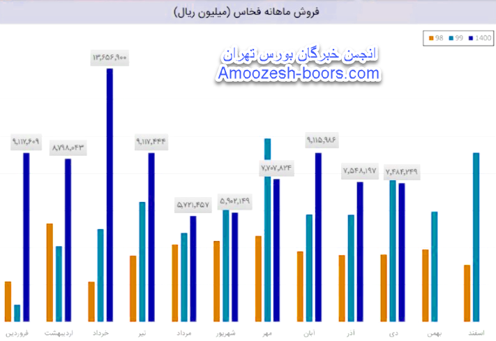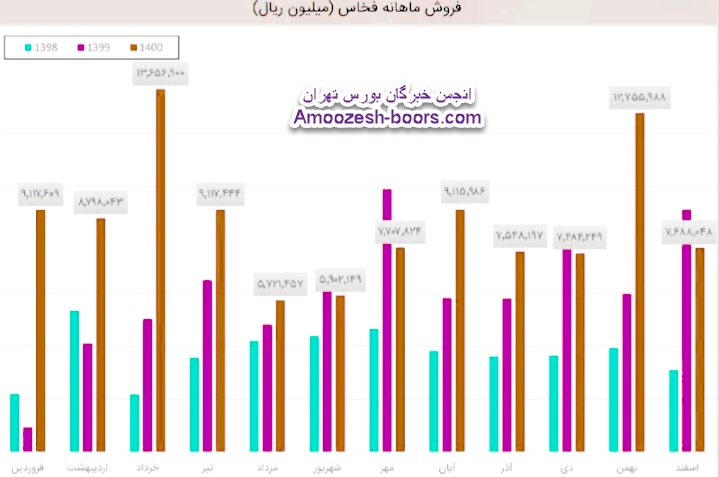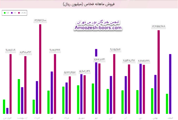 (61%) درصد از درآمد شرکت درین ماه مربوط به فروش داخلی و (39%) درصد آن مربوط به کل صادرات شرکت است. درآمد شرکت در این دوره نسبت به ماه قبل 70% افزایش و نسبت به میانگین ماه های قبل 52% افزایش داشته است. شرکت نسبت به دوره 1 مشابه سال قبل 115% افزایش درآمد داشته است.فخاس حدود 56 هزار تن در دی فروخته بود که این مقدار در بهمن با رشد 65 درصدی به حدود 92 هزار تن رسیده است. نرخ فروش محصولات تغییر چندانی نسبت به ماه گذشته نداشته است.