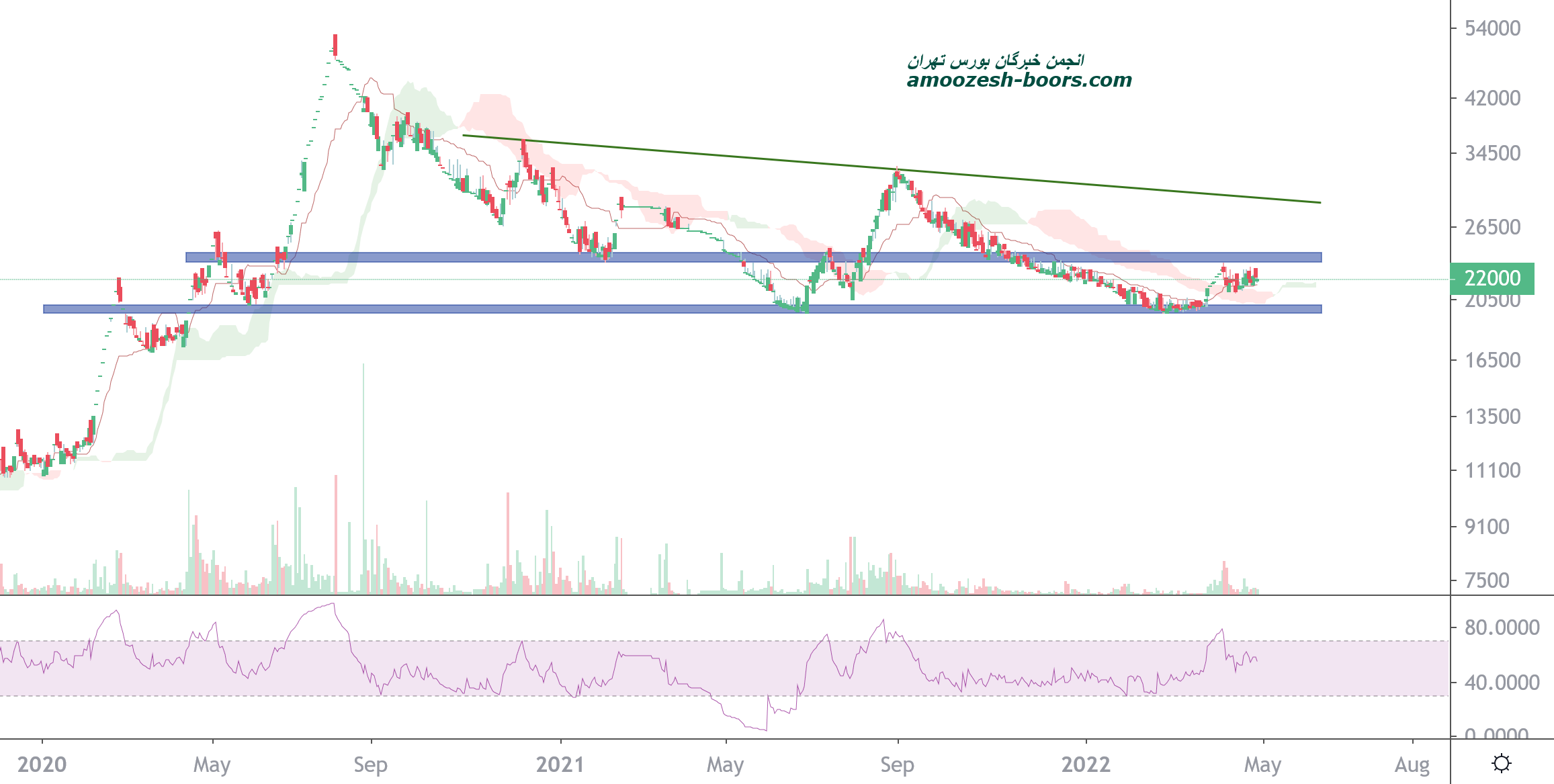 قیمت در حال حاضر بین محدوده حمایتی و مقاومتی در حال نوسان میباشد در صورت ادامه دار شدن فشار تقاضا و شکستن محدوده مقاومتی استاتیک و تثبیت بالای آن حرکت قیمت تا 28000 ریال دور از ذهن نخواهد بود و در صورتی که سهم وارد فاز اصلاحی شود و کف حمایتی از دست برود حمایتی بعدی سهم 17000 ریال در نظر گرفته خواهد شد که در این صورت حد ضرر دوستان کوتاه مدتی فعال خواهد شد.