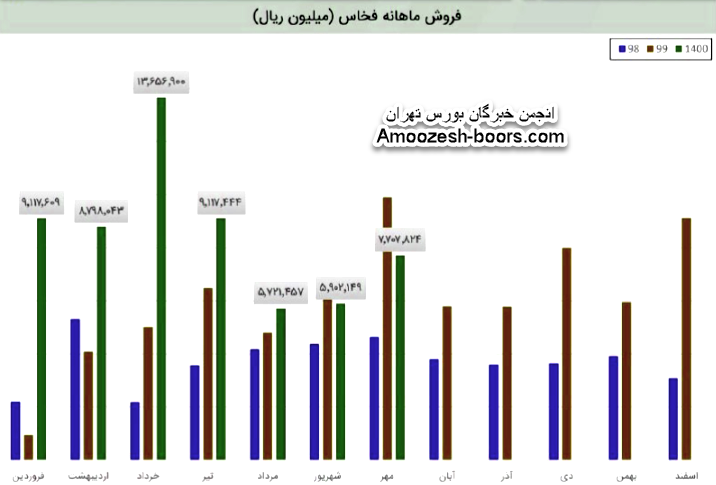 فخاس در اردیبهشت 76 هزار تن انواع محصول به فروش رساند که تقریبا 9% کمتر از ماه فروردین می باشد. مقدار فروش فخاس در اردیبهشت سال گذشته 78 هزار تن و در میانگین سال 99 حدودا 71 هزار تن بوده است.