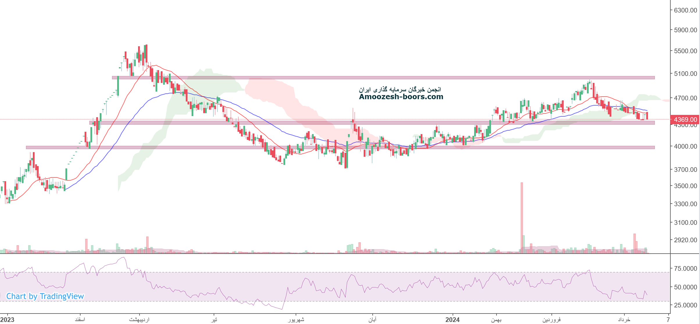 با بررسی که روی نمودار تکنیکال نماد فخاس داشتیم، قیمت سهم با اصلاحی که داشته به محدوده حمایتی 4300 ریال رسیده است، در صورت حفظ این محدوده حمایتی و ثبت کندل های صعودی، 5000 اولین مقاومت نماد فخاس خواهد بود، همچنین در صورت از دست رفتن محدوده حمایتی ذکر شده، حمایت بعدی نماد فخاس 4000 ریال در نظر گرفته خواهد شد.