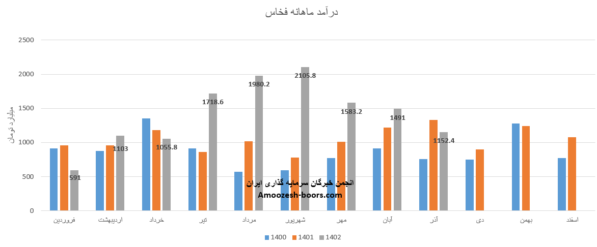 درآمد آبان ماه سال 1402 سهم فخاس 1491 میلیارد تومان بوده است که در مقایسه با ماه گذشته 6% کاهش داشته است.
