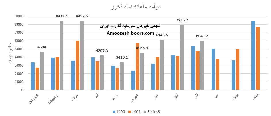 درآمد آبان ماه سال 1402 سهم فخوز 7946.2 میلیارد تومان بوده است که در مقایسه با ماه گذشته 29% رشد داشته است.