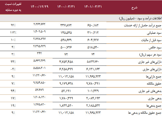 همچنین اهم تغییرات در اطلاعات صورت مالی 3 ماهه 1401 سهم فرابورس به شرح زیر میباشد :