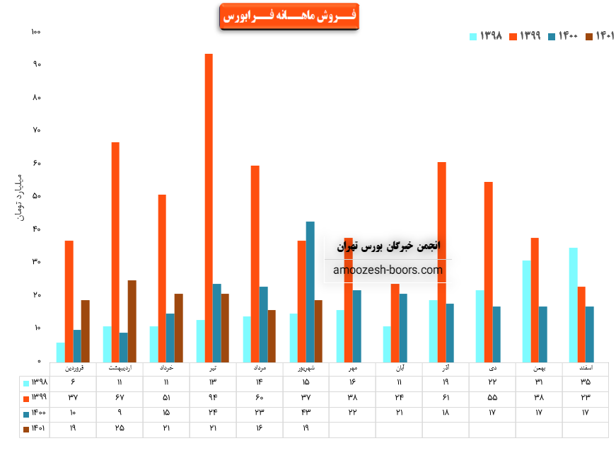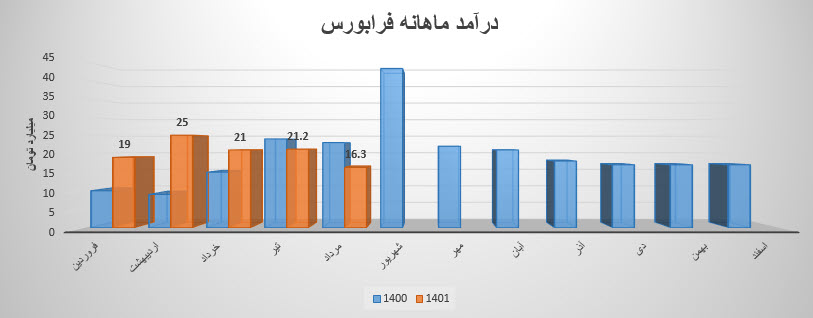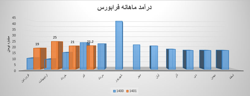 سهم فرابورس ایران در دوره یک ماهه منتهی به تیر ماه 1401، مبلغ 21.2 میلیارد تومان درآمد های مربوط به فروش و ارائه خدمات داشته است.
