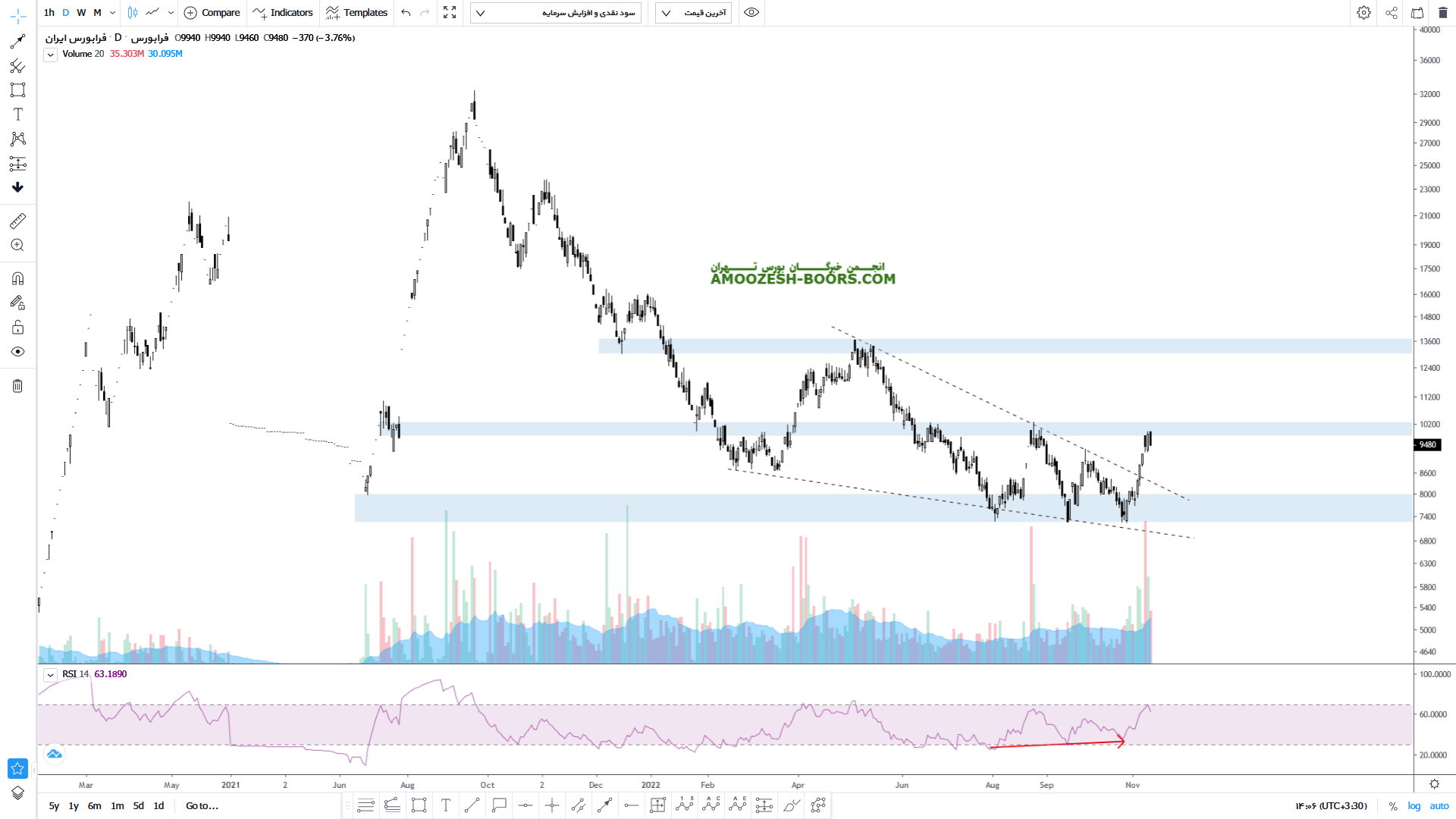 سهم فرابورس در حال حاضر مقاومت 11000 ریال را دارا میباشد، در صورت عبور از این مقاومت حرکت سهم فرابورس تا 17000 ریال دور ازذهن نخواهد بود، همچنین در صورت اصلاح، اولین حمایت 6700 ریال در نظر گرفته خواهد شد که درین صورت سیگنال خروج معامله گران کوتاه مدتی فعال شده و حد ضرر فعال میگردد.