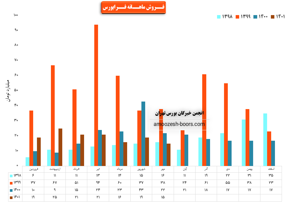 شرکت فرابورس ایران درعملکرد ماهانه مربوط به مرداد 1401، معادل 16.3 میلیارد تومان گزارش شده است . این رقم نسبت به ماه قبل 23% کاهش ونسبت به دوره 1 ماهه مشابه سال قبل 30% کاهش داشته است. درآمد سهم فرابورس نسبت به میانگین ماه های قبل 24% کاهش داشته است.متوسط درآمد ماهانه سال مالی گذشته شرکت فرابورس برابر 20 میلیارد تومان و در سال مالی جاری متوسط درآمد برابر 21 میلیارد شده است.