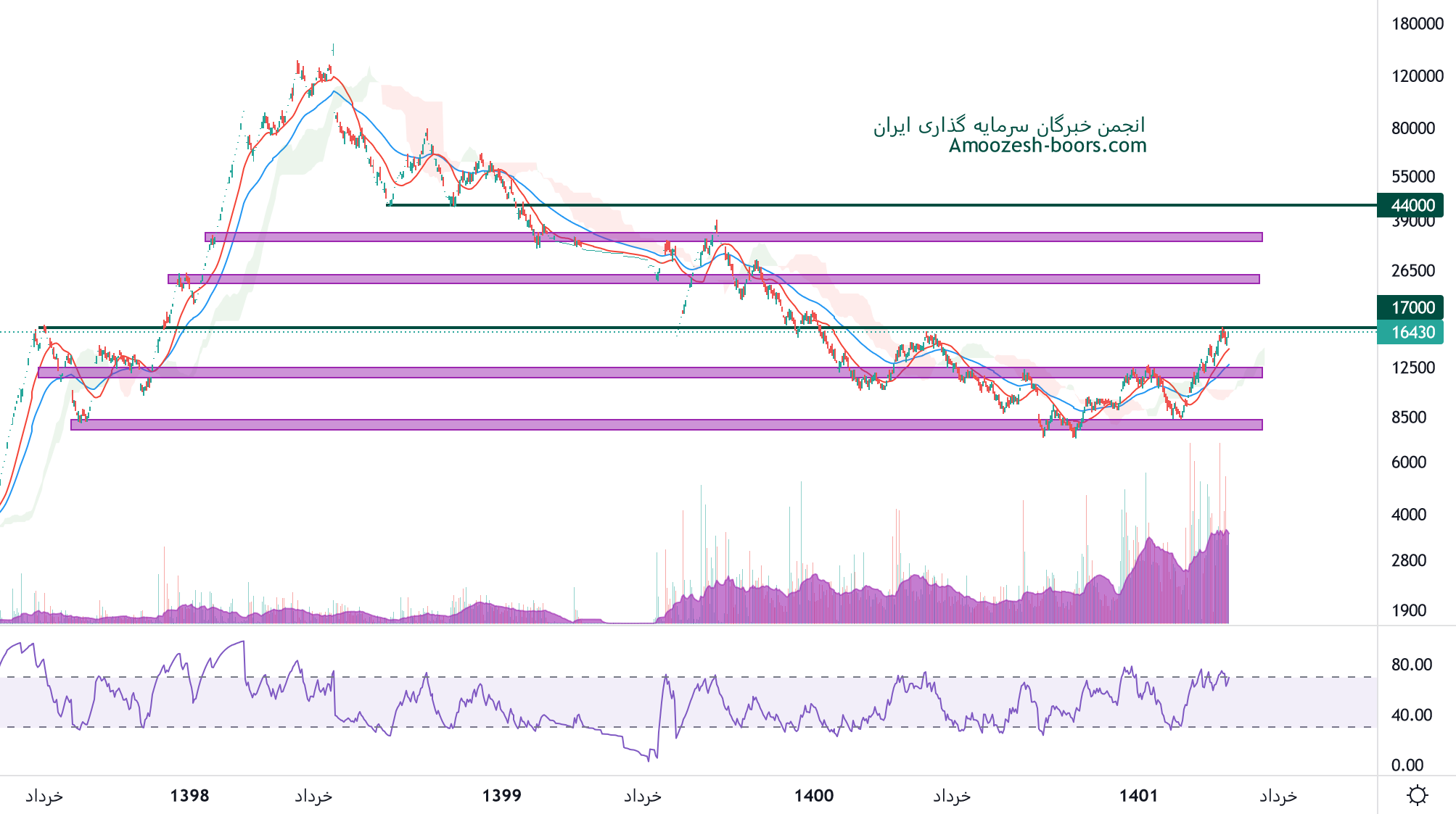 نماد فرابورس در حال حاضر به سطح مقاومتی 17000 ریال واکنش نشان داده، در صورت حفظ روند صعودی و عبور از این سطح مقاومتی، حرکت سهم فرابورس تا محدوده 21500 ریال محتمل خواهد بود، همچنین در صورت ورود سهم به فاز اصلاحی، اولین حمایت سهم 12000 ریال در نظر گرفته خواهد شد.