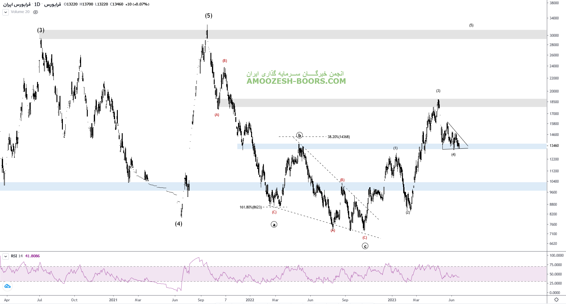 قیمت سهم فرابورس ایران بر روی حمایت مهم ناحیه ۱۳۰۰ تومان قرار گرفته است. در صورت حفظ این ناحیه و سیگنال مثبت کلیت بازار، حرکت سهم فرابورس تا مقاومت ناحیه ۱۹۰۰ تومان و در صورت شکست تا مقاومت سقف تاریخی ناحیه 3000 تومان تداوم خواهد داشت.