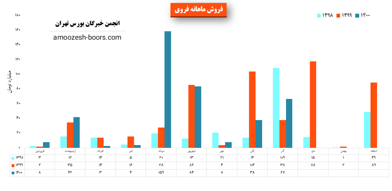 فروی در آذر 1400 مبلغ 67 میلیارد تومان درامد داشته که این میزان نسبت به ماه گذشته 76% و همچنین نسبت به مدت مشابه سال گذشته 76% رشد پیدا کرده است!
