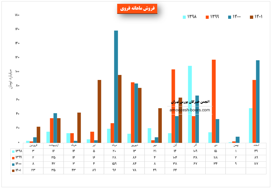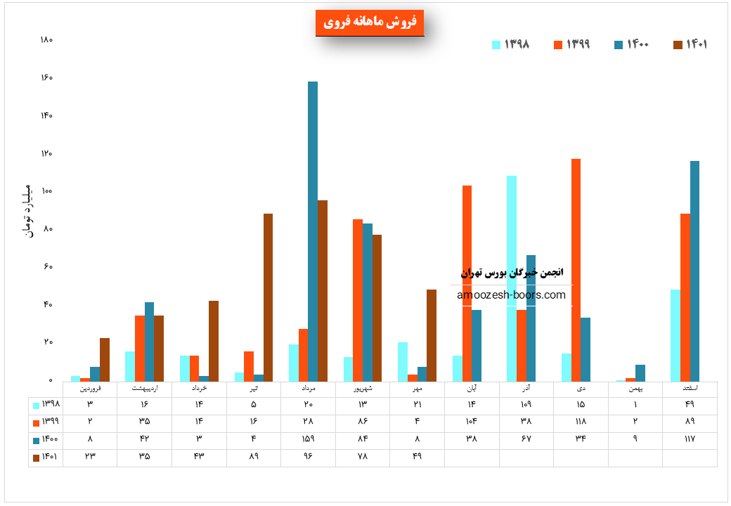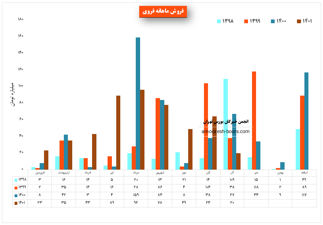 نماد فروی در آبان ماه حدود بیش از 1400 تن فروش داشته که 900 تن فروش داخلی و 500 تن فروش صادراتی به حساب آمده است.