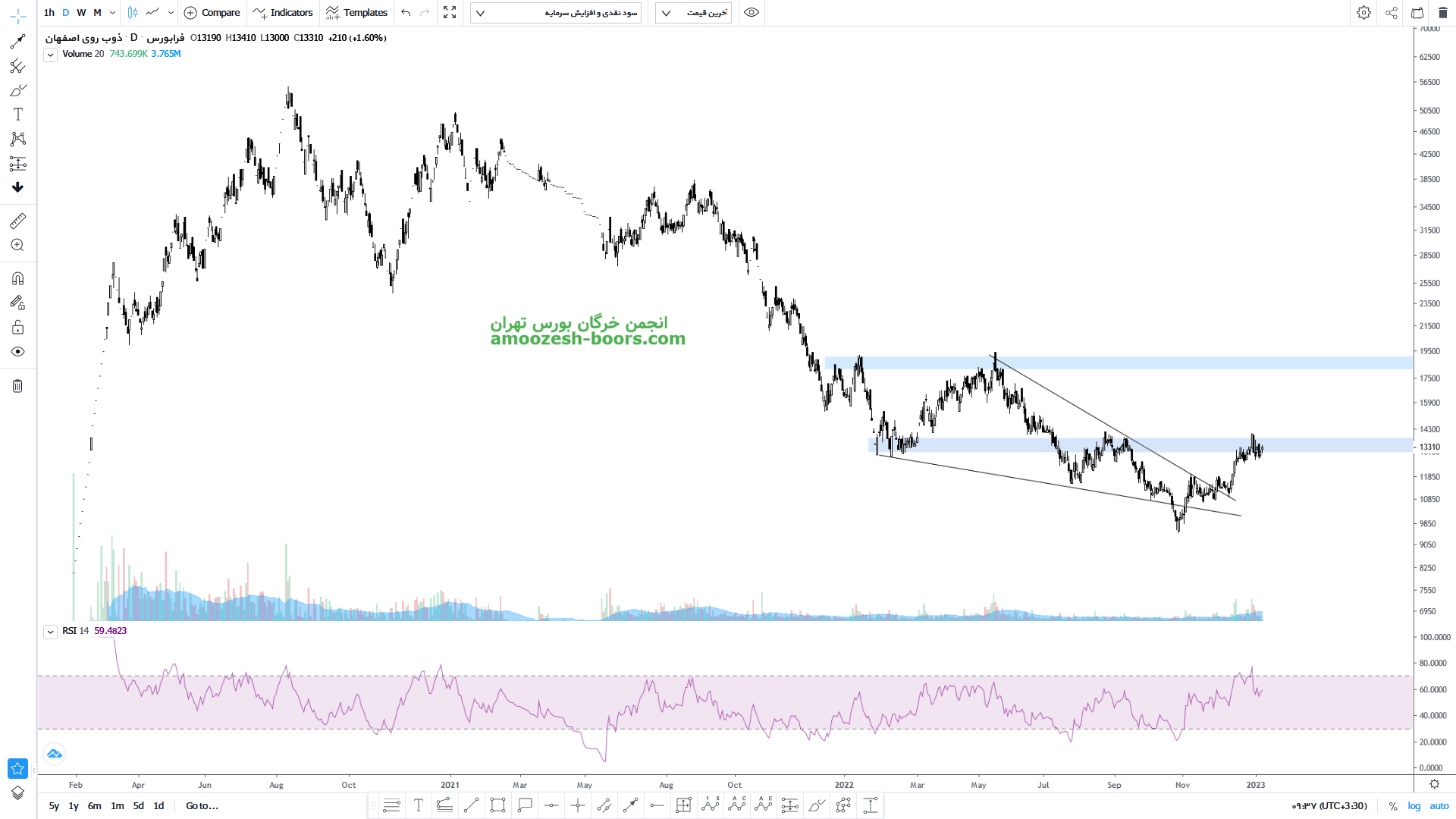 قیمت سهم فروی اکنون مقاومت مهم ناحیه ۱۳۵۰ تومان را پیش روی خود دارد که می تواند با عبور از این مقاومت مهم رشد خود را تا ناحیه مقاومتی 1900 تومان نیز ادامه دهد. همچنین در صورت بروز واکنش منفی نسبت به ناحیه مقاومتی 1350 تومان قیمت سهم فروی می تواند اصلاحی را تا کف ناحیه 1000 تومان داشته باشند.