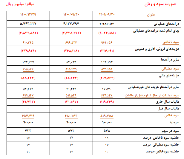 مجموع درآمد فروی نسبت به مدت مشابه طی علکرد 11 ماهه رشد 58 درصدی داشته است.