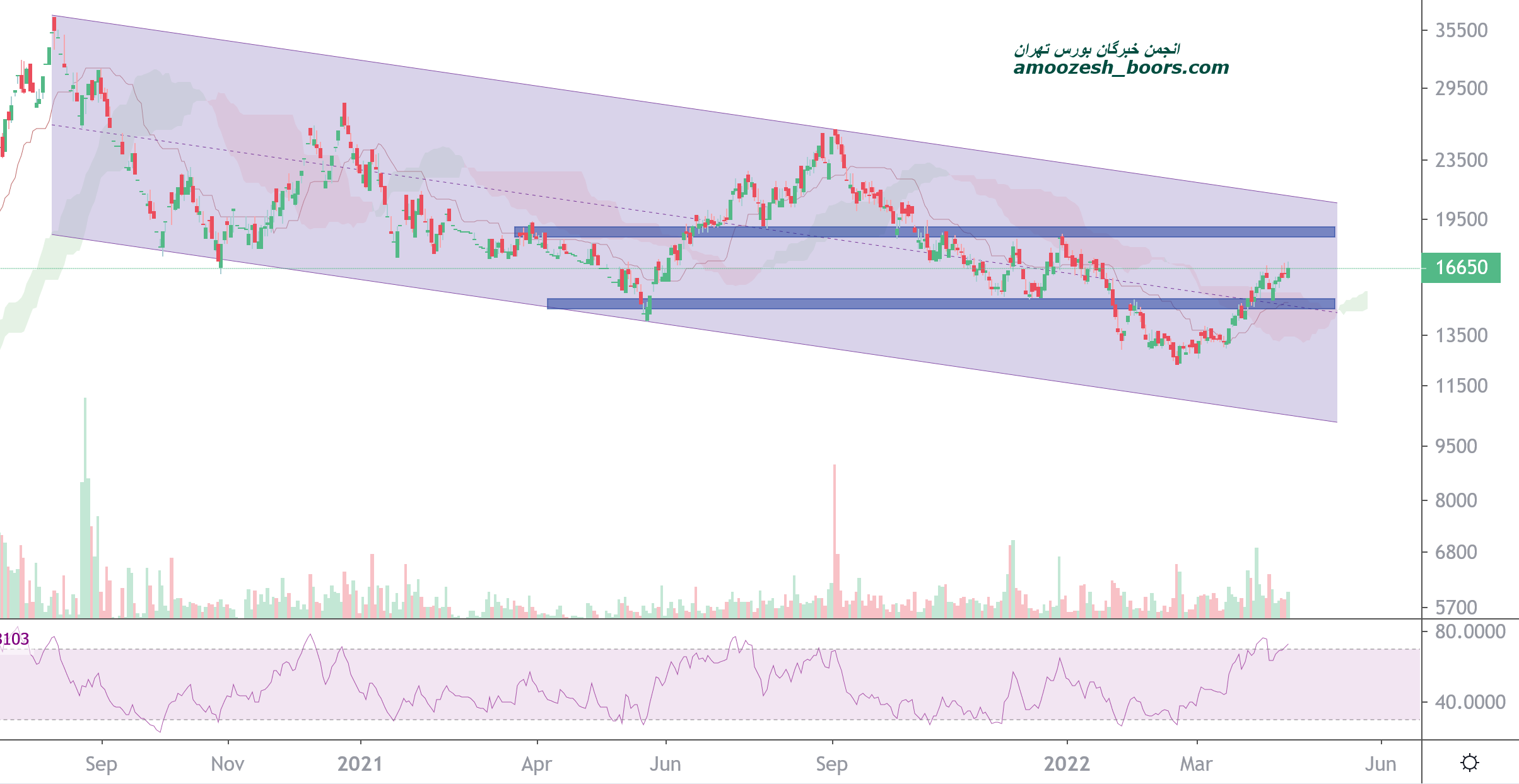 قیمت بعد از شکستن محدوده مقاومتی استاتیک 15000 ریال و تثبیت بالای این محدوده گارد صعودی به خود گرفته است و در صورت ادامه دار شدن فشار تقاضا مقاومت های اول و دوم سهم به ترتیب 18000 و 20000 ریال در نظر گرفته خواهد شد و در صورتی که فشار عرضه بر تقاضا غلبه کند و محدوده کف حمایتی از دست برود اولین حمایت سهم 12000 ریال خواهد بود که در این صورت حد ضرر دوستان کوتاه مدتی فعال خواهد شد.