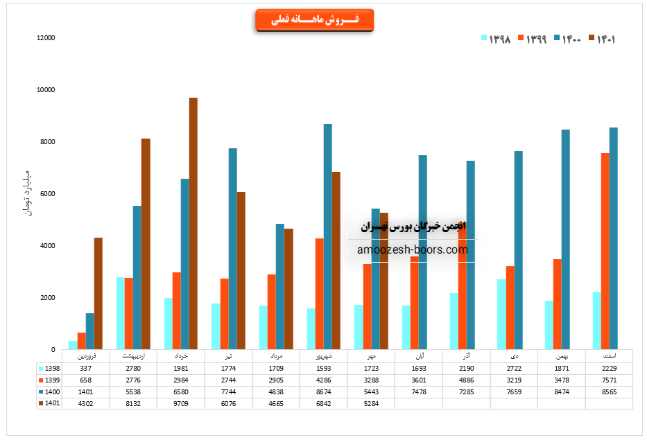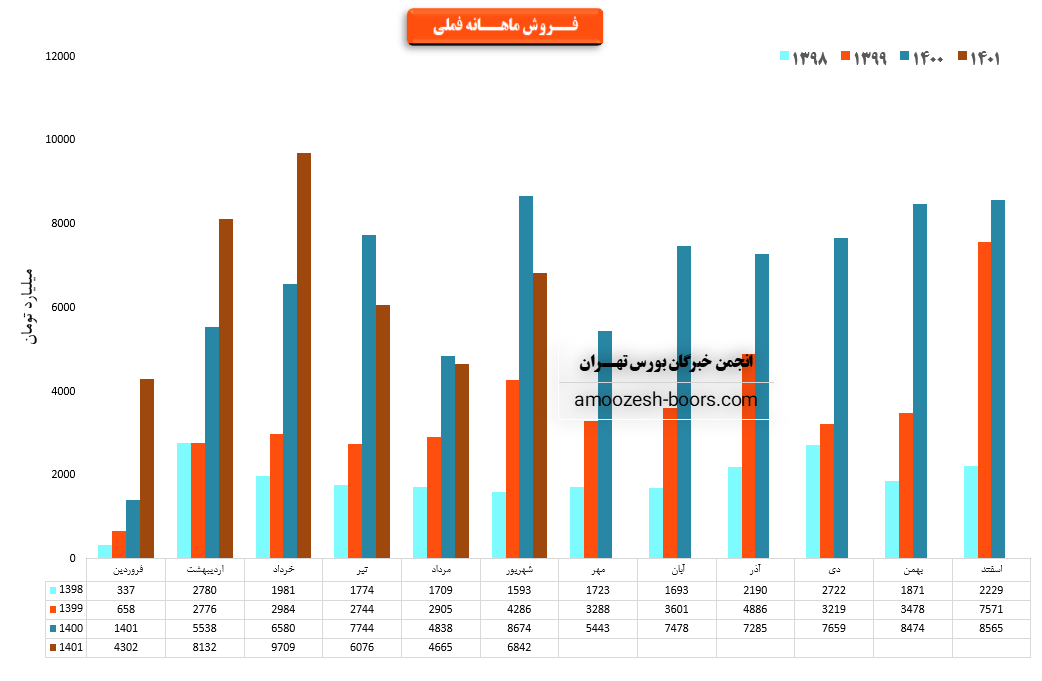 نرخ فروش محصول اصلی شرکت در این ماه 233 میلیون تومان به ازای هر تن بوده که در مقایسه با ماه گذشته حدود 3% افزایش پیدا کرده است.