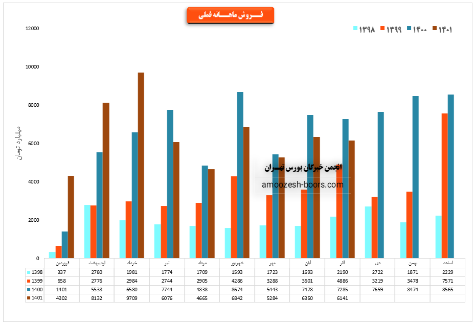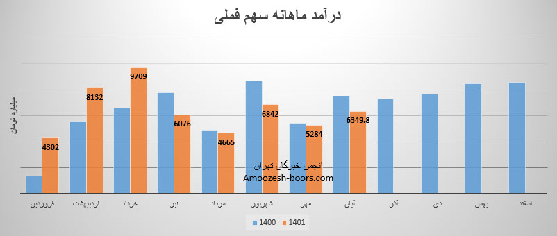 نماد فملی (شرکت ملی مس ایران) در آذر ماه ۱۴۰1 حدود مبلغ 6141 میلیارد تومان درآمد داشته که این میزان در مقایسه با ماه گذشته 3% و همچنین در مقایسه با مدت مشابه سال گذشته 16% کاهش درآمد پیدا کرده است.