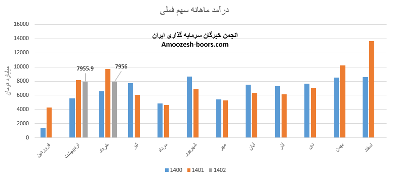 ضمناً در تاریخ شنبه مورخ 31 تیر ماه سال ۱۴۰۲ مجمع عمومی عادی سالانه شرکت با حضور بیش از 68% سهامداران برگزار گردید که در آن مبلغ 480 ریال معادل 58% eps ساخته شده در سال گذشته به عنوان سود نقدی بین سهامداران تقسیم شد.