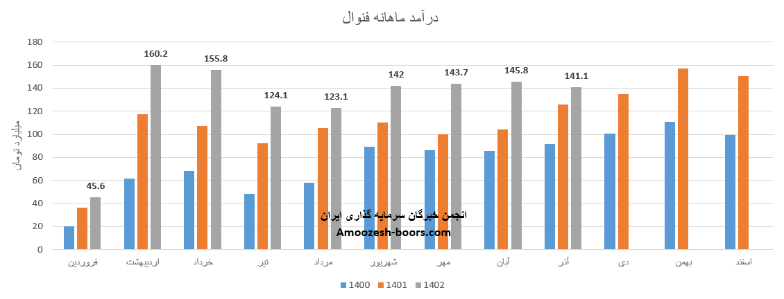 فروش آذر ماه سال 1402 سهم فنوال 141.1 میلیارد تومان گزارش شده است، تغییرات درآمدی فنوال به شرح زیر میباشد: