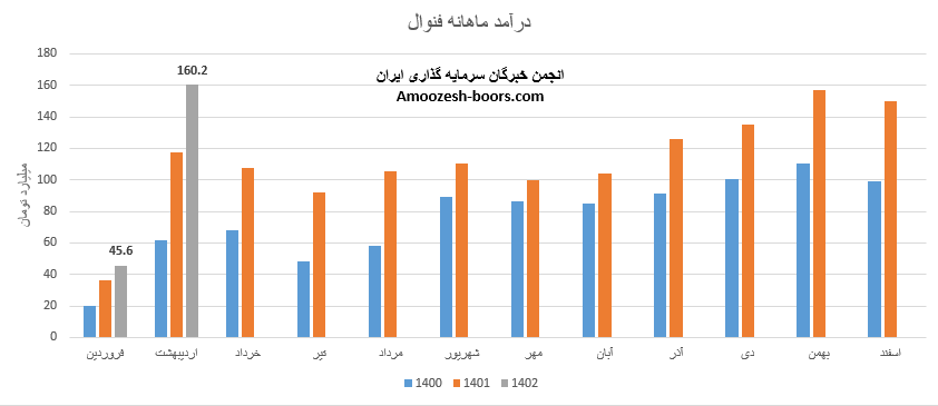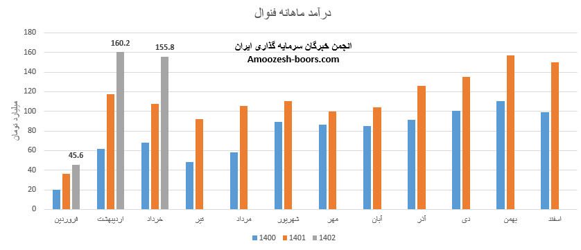 فروش نماد فنوال طی عملکرد 1 ماهه برابر با 155.8 میلیارد تومان بوده است که در مقایسه با ماه گذشته افت 3 درصدی درآمد را تجربه نموده است، همچنین درآمد سهم فنوال در مقایسه با متوسط ماهانه و مدت مشابه به ترتیب افزایش 51 و 45 درصدی داشته است، مجموع عملکرد 3 ماهه فنوال نسبت به مدت مشابه 38% بهبود داشته و طی این دوره 27% از کل درآمد سال قبلی پوشش داده شده است.