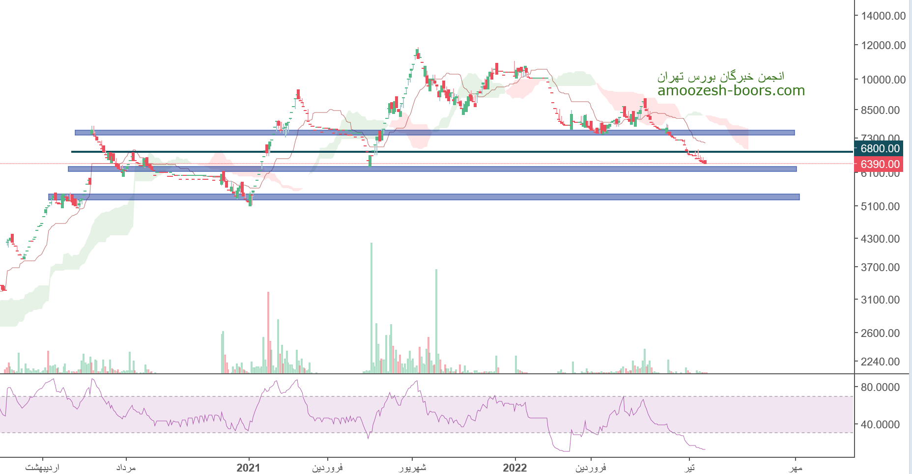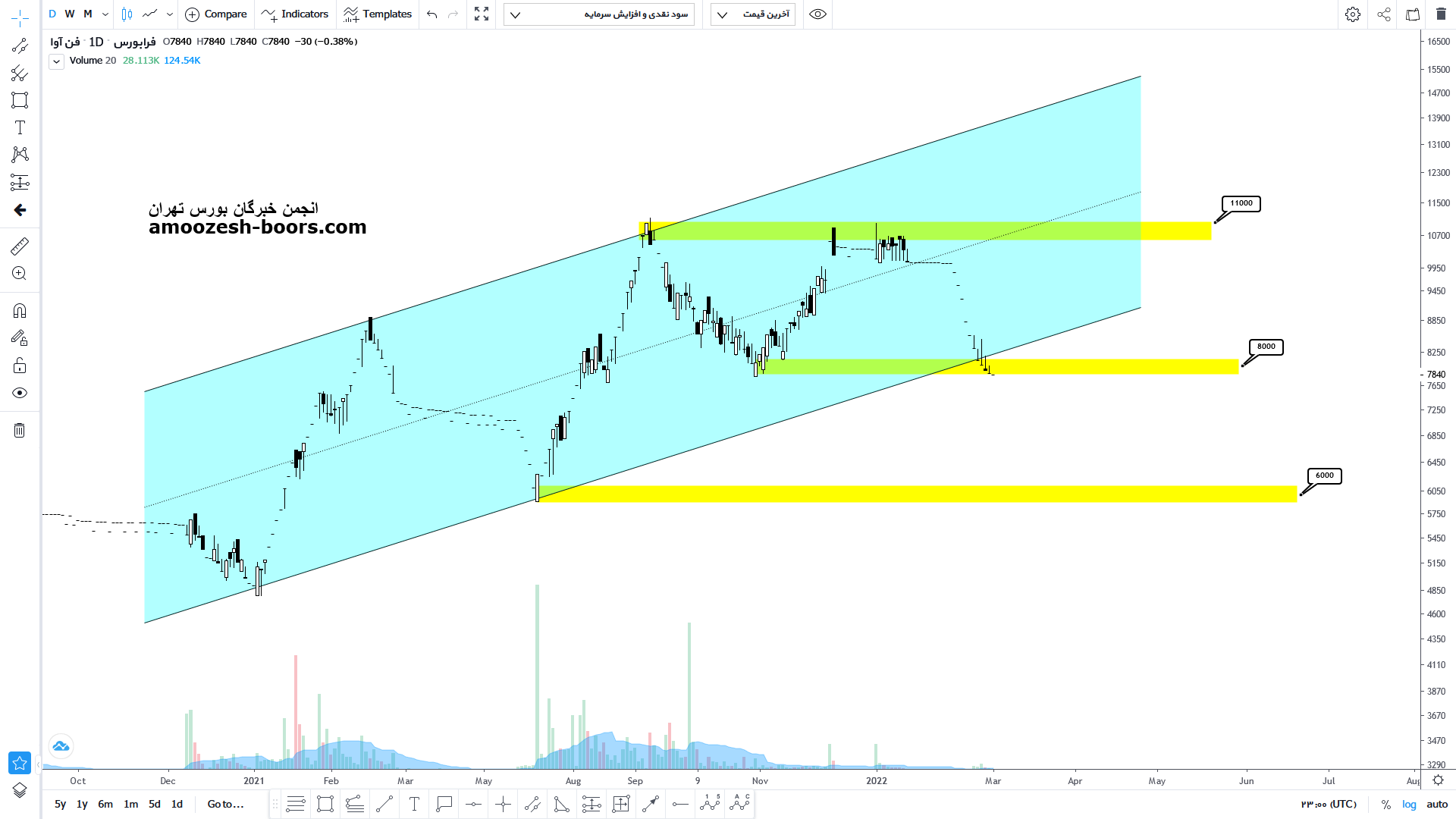 قیمت سهم فن آوا در حال حاضر حمایت 6100 ریال را دارا میباشد، در صورت تثبیت قیمت، حرکت سهم تا 6800 ریال دور از ذهن نخواهد بود، همچنین در صورت از دست رفتن این حمایت، حمایت بعدی سهم فن آوا 5300 ریال خواهد بود که در این صورت حد ضرر فعال میگردد.