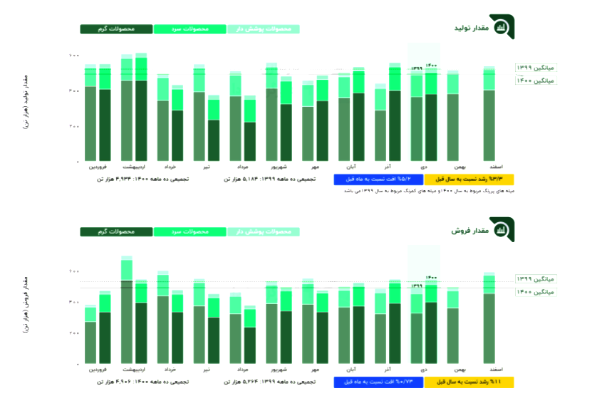 فولاد مبارکه اصفهان در دی ماه موفق به ثبت فروش فوقالعاده 132.919 میلیارد ریالی شده است. گرچه این رقم نسبت به ماه گذشته کاهش 2 درصدی داشته است اما گزارشها از بهبود 3 درصدی درآمد در مقایسه با میانگین فروش فصل پاییز خبر میدهند. این در حالیست که نرخ فروش محصولات نسبت به ماههای گذشته از ثبات خوبی برخوردار بوده است. همچنین گزارش ماهانه فولاد از نظر مقداری نشان میدهد که در آذر 1400 موفق به فروش 609,000 تن محصول شده است که نسبت به ماه گذشته کاهش 4 درصدی داشته است.با توجه به موارد مطروحه و همچنین با در نظر گرفتن تحقق سود حاصل از سرمایهگذاریها در کوارتر چهارم بنظر میرسد فولاد در آخرین فصل از دوره 12 ماهه به سود قابل قبولی دست یابد.