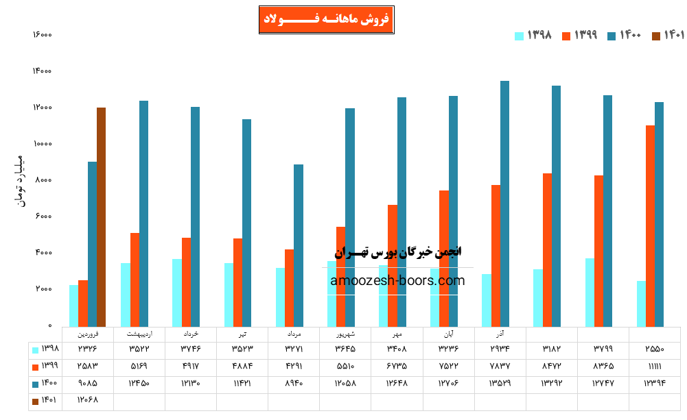 شرکت فولاد مبارکه اصفهان در فروردین ماه سال ۱۴۰۱ حدود مبلغ ۱۲,۰۶۸ میلیارد تومان فروش داشته که این میزان در مقایسه با ماه گذشته ۳ % کاهش و همچنین در مقایسه با مدت مشابه سال گذشته حدود ۳۳ % افزایش درآمد پیدا کرده است.