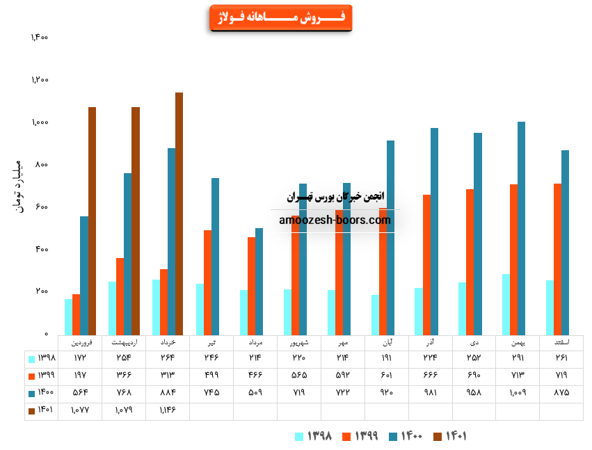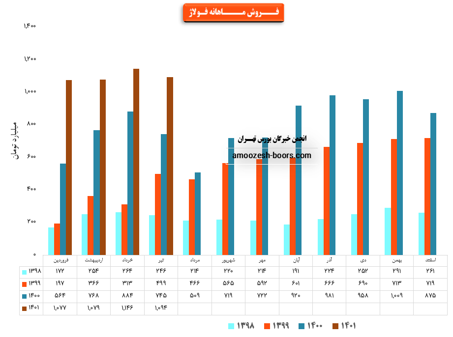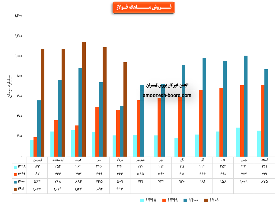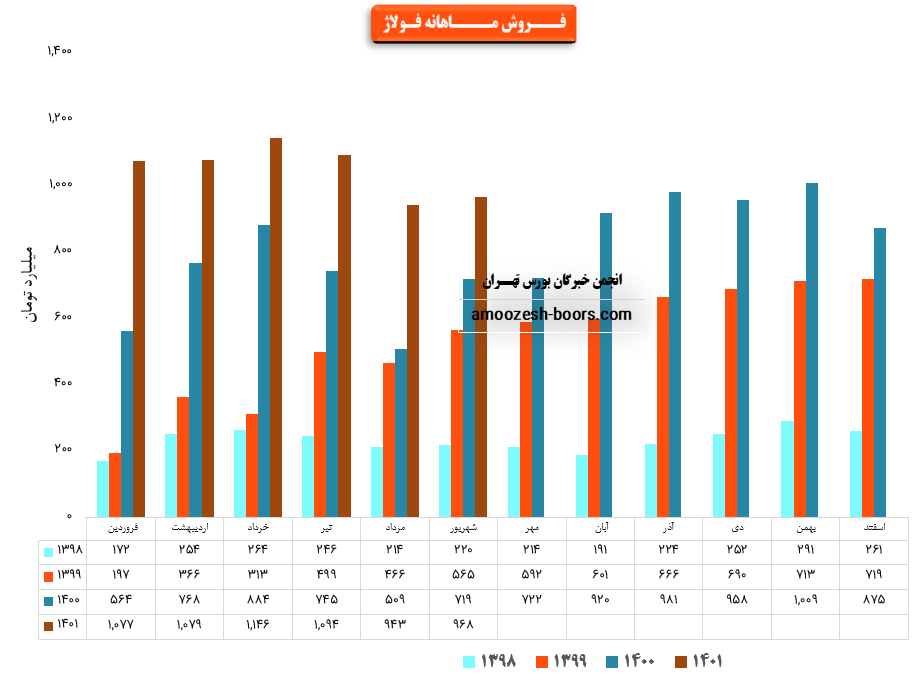 شرکت فولاد آلياژي ايران با نماد فولاژ در شهریور ماه ۱۴۰1 حدود مبلغ 968 میلیارد تومان درآمد داشته که این میزان در مقایسه با ماه گذشته 3% و همچنین در مقایسه با مدت مشابه سال گذشته 35% رشد درآمد پیدا کرده است.