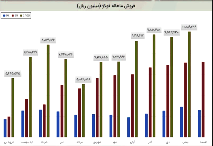 (92) درصد از درامد شرکت از طریق فروش داخلی و (8%) درصد از درآمد شرکت درین ماه مربوط به کل صادرات شرکت است. درآمد شرکت در این دوره نسبت به ماه قبل 5% افزایش و نسبت به میانگین ماه های قبل 30% افزایش داشته است. شرکت نسبت به دوره 1 مشابه سال قبل 42% افزایش درآمد داشته است.فولاژ در بهمن حدودا 46 هزار تن محصول به فروش رساند که 12 درصد بیشتر از ماه دی می باشد. نرخ فروش محصولات آلیاژی و مهندسی شرکت همانند ماه آبان به ترتیب برابر با 24 و 17 میلیون تومان در هر تن گزارش شده است اما نرخ فروش محصولات صادراتی به حدود 13 میلیون تومان در هر تن رسیده است. با توجه به موارد گفته شده و همچنین فروش خوب دی و بهمن ماه که برابر با 75 درصد از کل فروش 3 ماهه پاییز است بنظر میرسد فولاژ در کوارتر نهایی از سود بهتری در مقایسه با فصل پاییز برخوردار باشد. همچنین تحلیلگران معتقدند فولاژ در پایان سال مالی پتانسیل تحقق سود 250-270 تومانی را دارد.