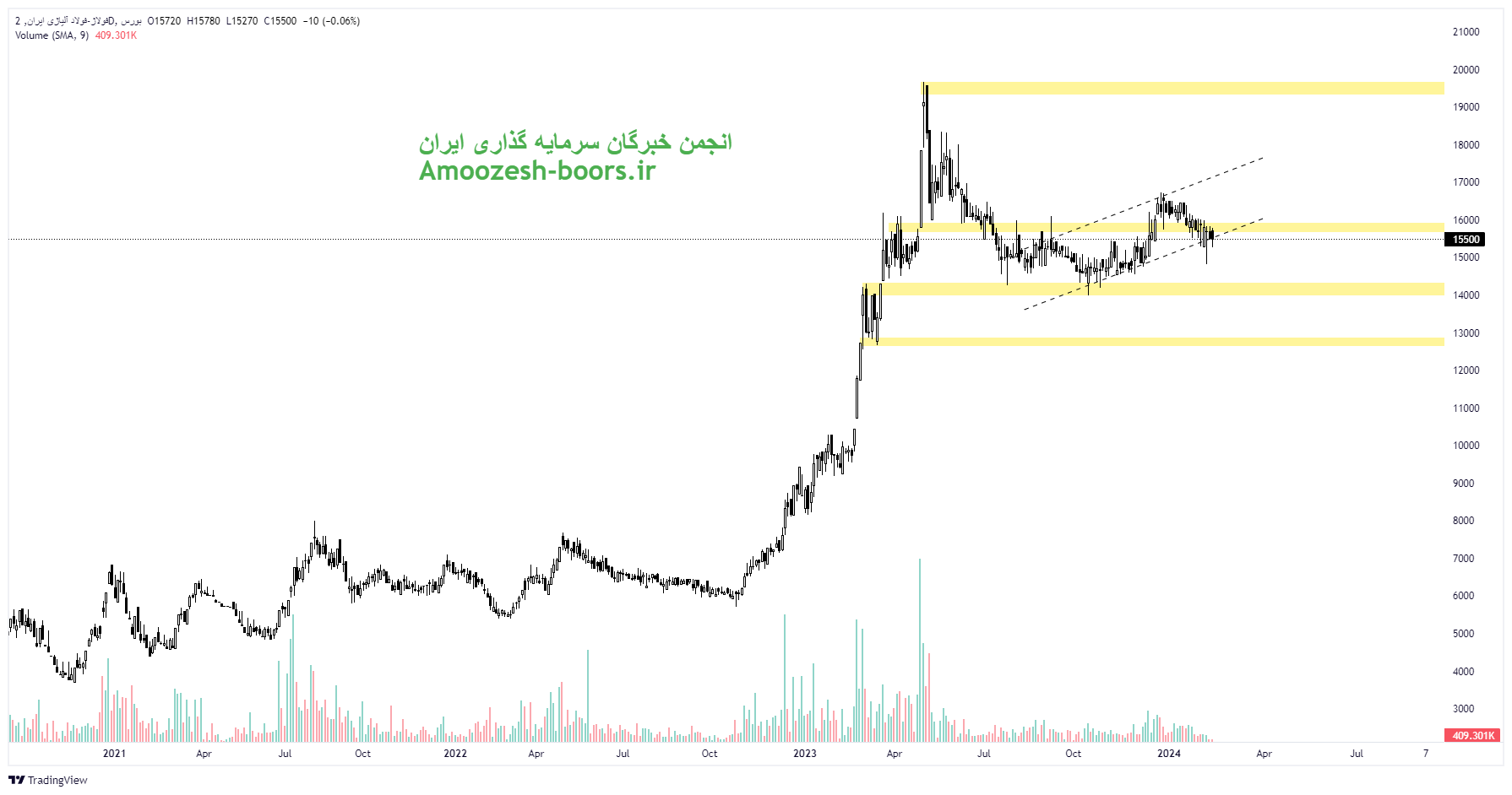همانطور که در تحلیل تکنیکال فولاژ میبینیم قیمت به محدوده عرضه نزدیک شده است.