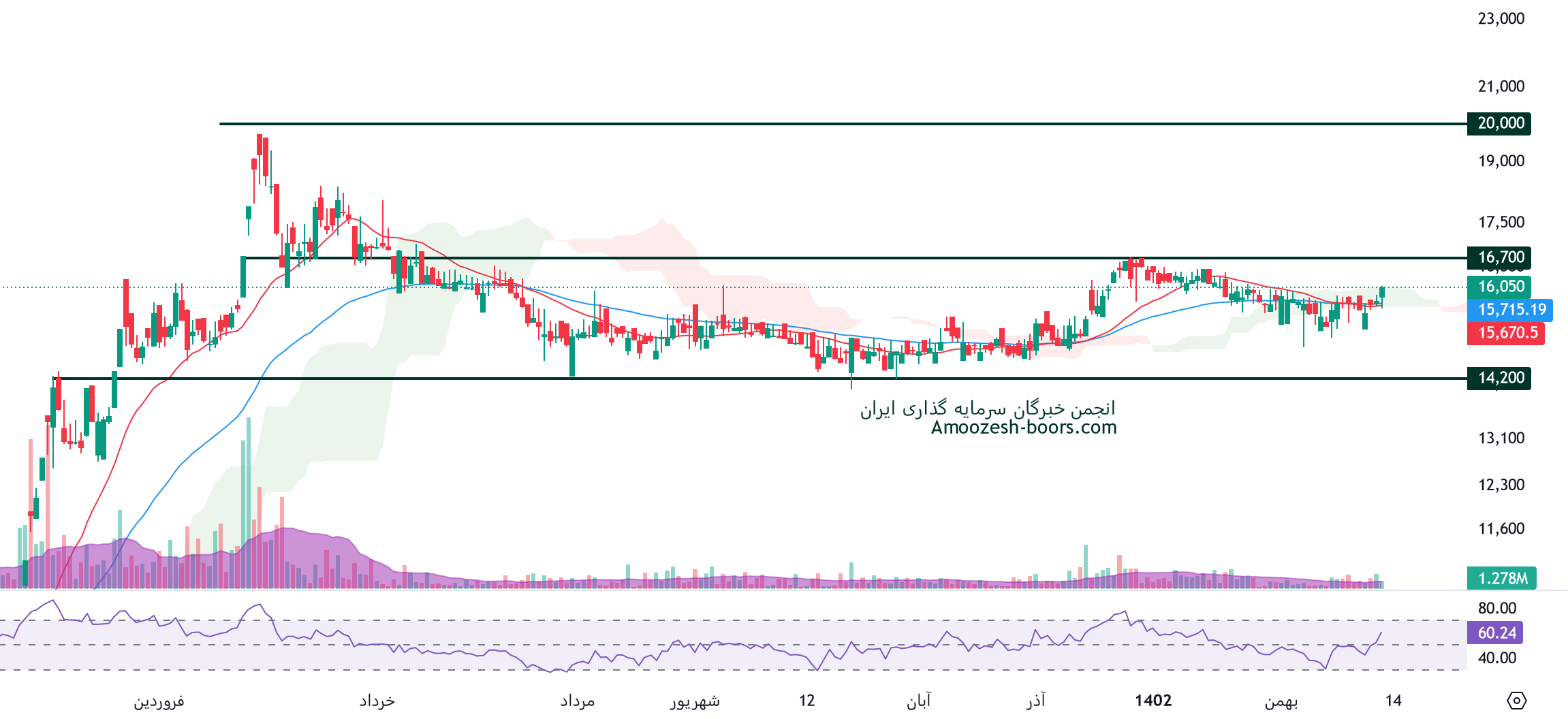 قیمت سهم فولاژ بر روی حمایت ناحیه 1600 تومان قرار گرفته است لذا در صورت ایجاد تقاضا در کلیت بازار مقاومت های مهم 1800 و 2000 تومان مقاومت های مهم پیش روی سهم در نظر گرفته شده اند. همچنین در صورت از دست رفتن حمایت ناحیه 1600 تومان حمایت بعدی سهم فولاژ ناحیه 1400 تومان در نظر گرفته خواهد شد.
