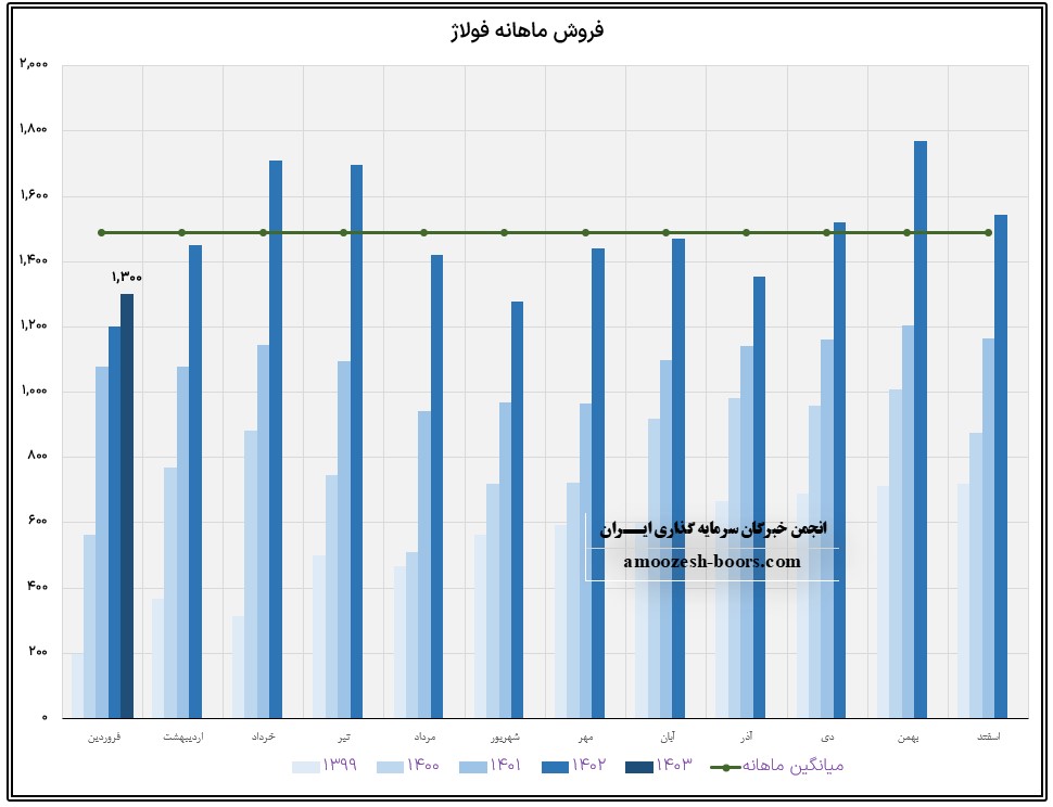 نماد فولاژ در فروردین ماه حدود بیش از 33600 تن از محصولات خود را به فروش رسانده که این میزان در مقایسه با حجم فروش ماه گذشته خود حدود 22% کاهش پیدا کرده است.