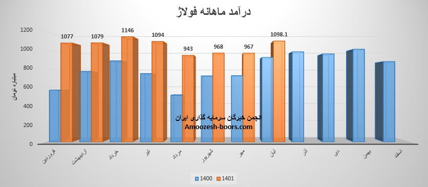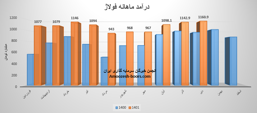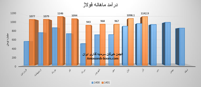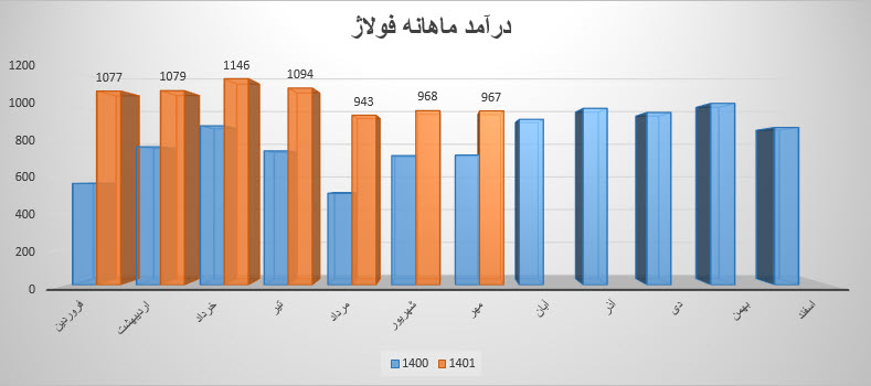 سهم فولاژ در گزارش ماهانه آذر 1401 به درآمد 11,42.9 میلیارد تومانی رسید. فولاژ در آذر ماه هیچگونه صادراتی نداشته و تمام درآمد خود را از طریق فروش داخلی تامین نموده است . فوالاژ موفق شده به ثبت رکورد تازه ای در گزارشات ماهانه خود شده است. درآمد ماهانه فولاژ با تغییرات زیر مواجه بود: