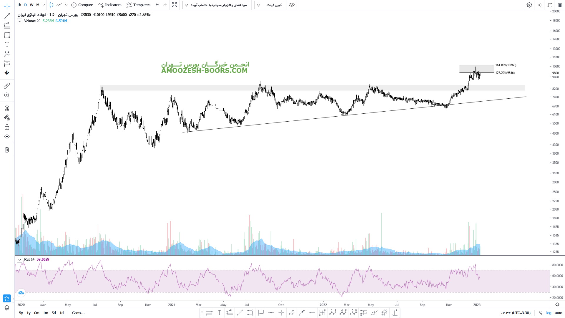 قیمت سهم فولاژ بر روی مقاومت مهم ناحیه 1000 تومان قرار گرفته است. لذا میتواند در صورت بروز واکنش منفی نسبت به این ناحیه مقاومتی اصلاحی را تا ناحیه 830 تومان تجربه کنند. همچنین درصورت شکسته شدن ناحیه حمایتی 830 تومان، حمایت بعدی قیمت سهم فولاژ حمایت ناحیه خط روند صعودی در نظر گرفته خواهد شد.