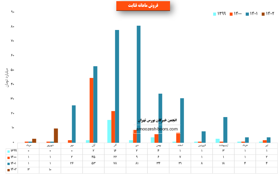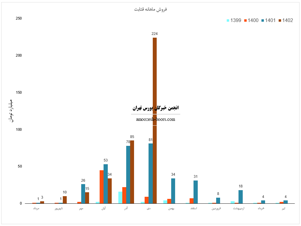 سهم قثابت در دی ماه حدود بیش از 15/650 تن از محصولات خود را به فروش رسانده که این میزان در مقایسه با حجم فروش ماه گذشته خود حدود 92% افزایش پیدا کرده است.