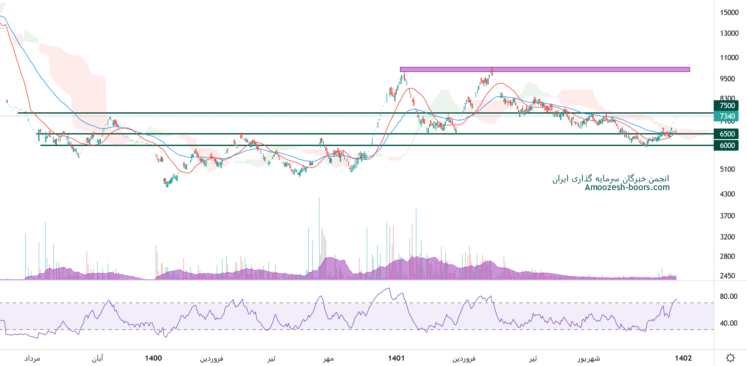 حمایت قجام 8200 ریال: این سطح بهعنوان یک نقطه حیاتی برای جلوگیری از اصلاح بیشتر قیمت عمل میکند، اگر قیمت به زیر این سطح نفوذ کند، انتظار میرود که حمایت بعدی در محدوده 7200 ریال قرار داشته باشد.