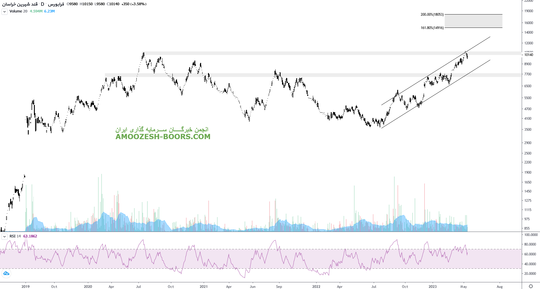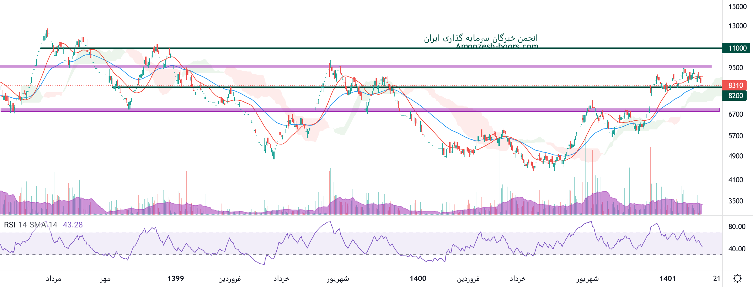 نماد قشرین مقاومت 9200 ریال را پیش رو دارد، در صورتی که سهم قشرین موفق به عبور از این مقاومت شود، حرکت سهم تا 10200 ریال ذوز از ذهن نخواهد بود، همچنین در صورت اصلاح، حمایت های سهم 8000 و 7400 ریال ارزیابی میگردند.