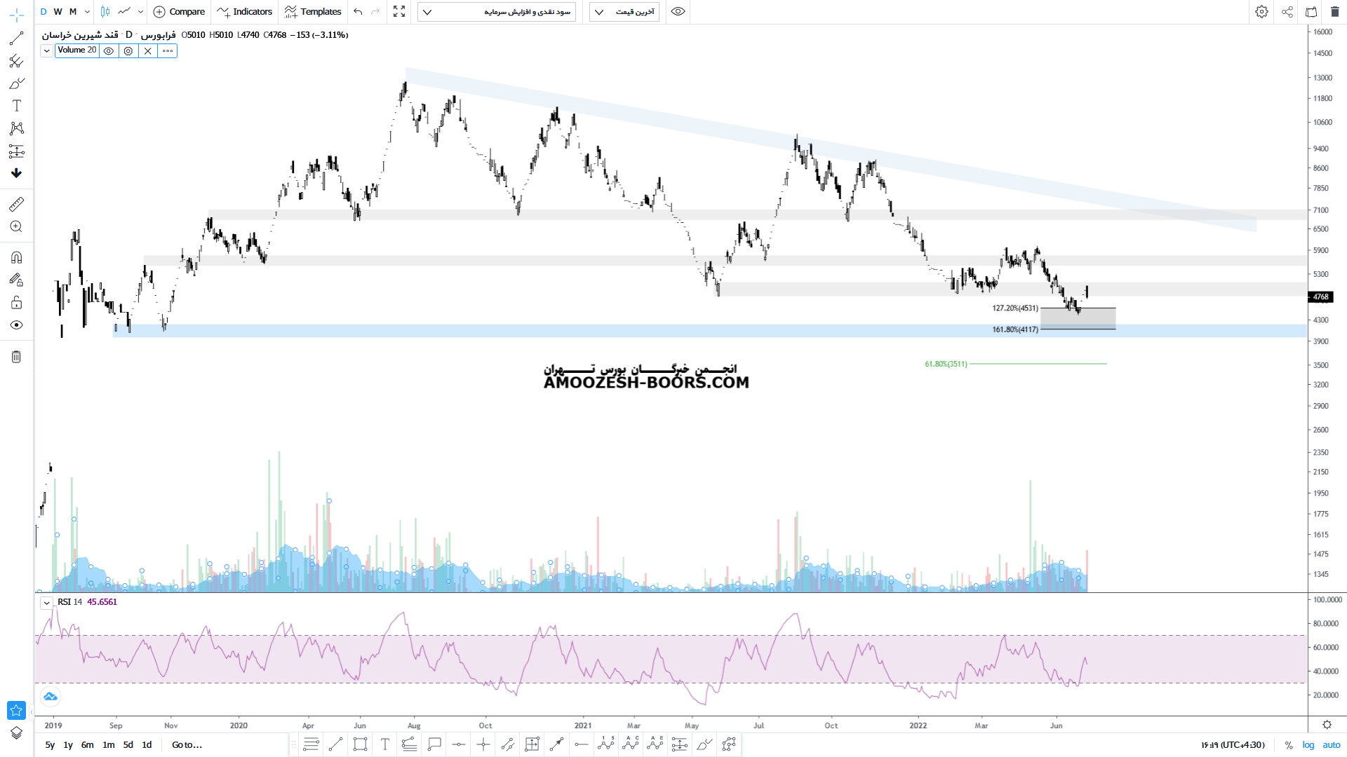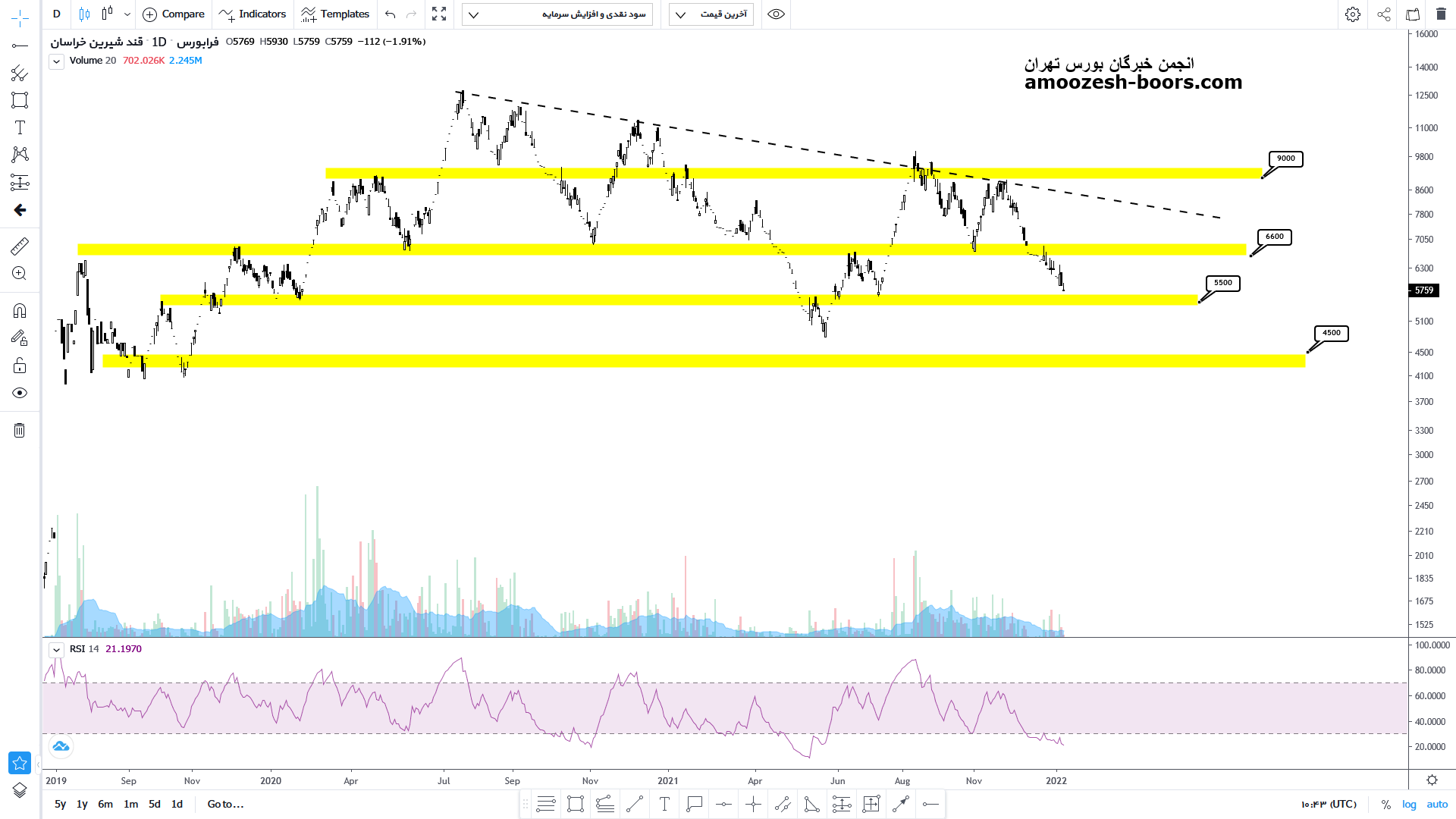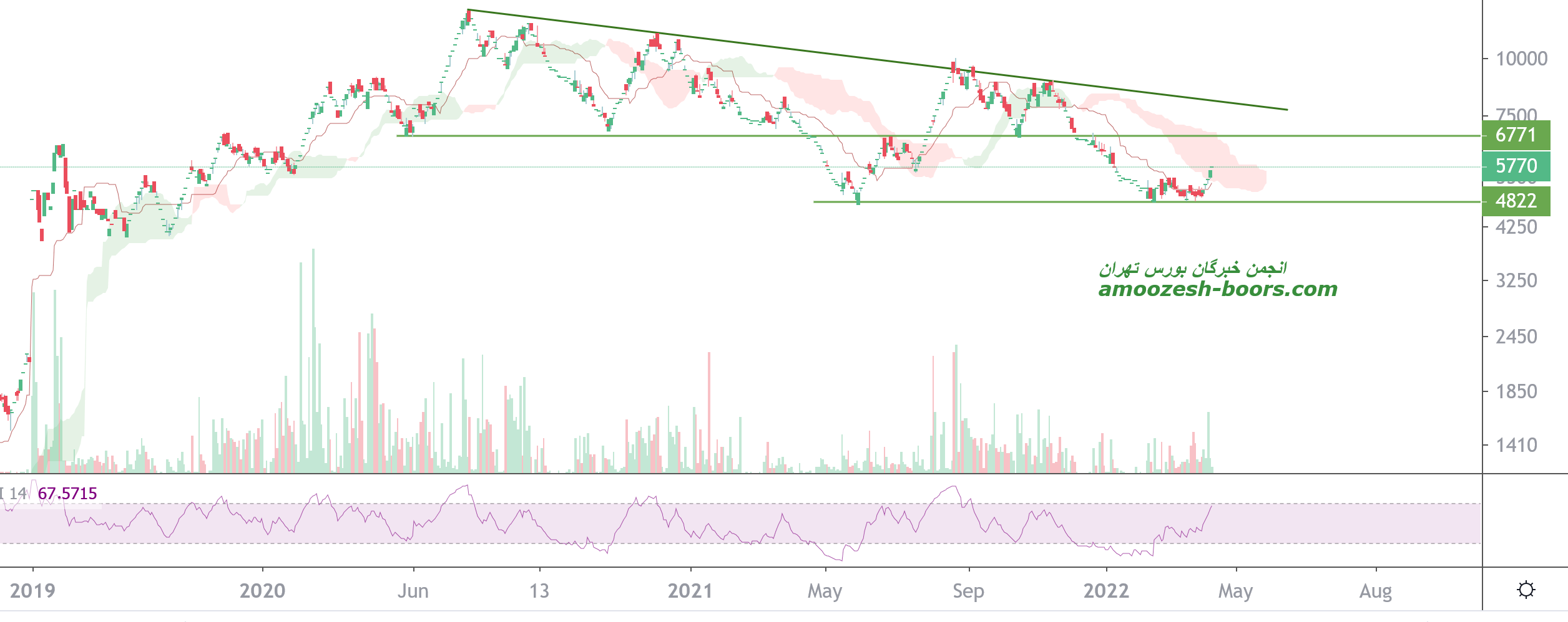 اما درصورت عدم حمایت در این محدوده حمایتی، نزول قیمت تا محدوده 4500 ادامه خواهد داشت