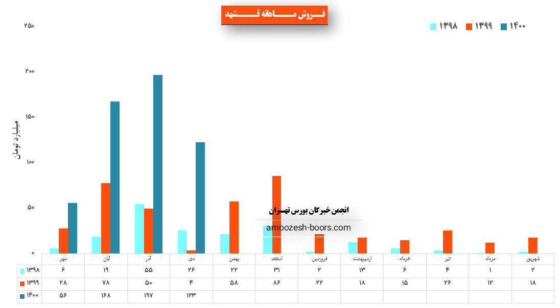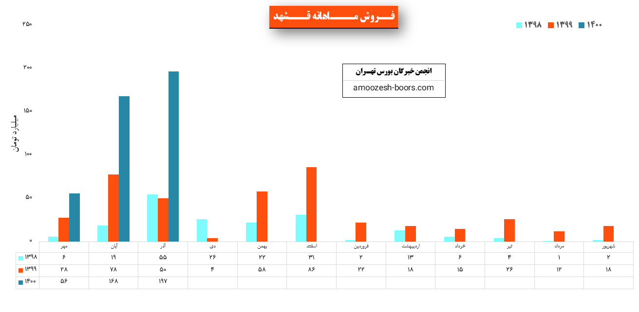 نماد قشهد در آذر 1400 مبلغ 197 میلیارد تومان درامد داشته که این میزان نسبت به ماه گذشته 17% و همچنین نسبت به مدت مشابه سال گذشته 294% رشد پیدا کرده است!